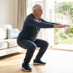 The Bodyweight Squat is the king of lower-body exercises. To perform it correctly, stand with your feet shoulder-width apart and lower your hips as if sitting back into an invisible chair, keeping your chest upright and your weight in your heels. For older adults or those with limited mobility, a “Box Squat” is an excellent modification—simply practice sitting down into a sturdy chair and standing back up without using your hands for momentum.