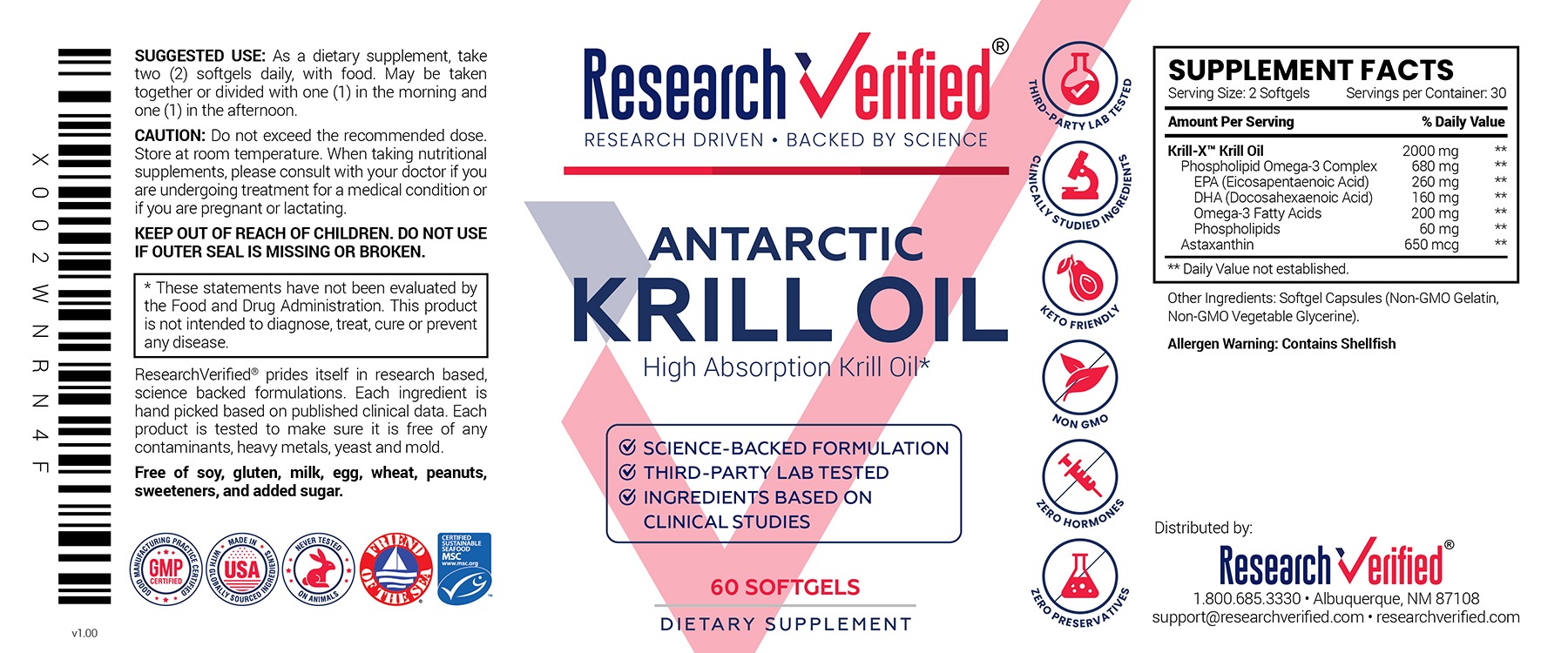 It's important to note that it was in fact pure, Antarctic krill oil that was used in the study mentioned below, (the same kind found in Research Verified's Krill Oil). Most products contain only 1000mg of krill oil which do not effectively raise levels of EPA and DHA. EPA and DHA are the key to optimal cardiovascular and cognitive health, so read the label before you buy.