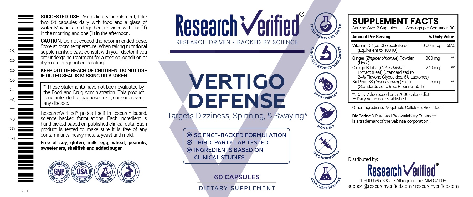 It's important to note that Research Verified® Vertigo Defense provides a multi-action formula to target vertigo. It addresses deficiencies that can cause vertigo, provides relief from nausea, dizziness, motion sickness, and imbalance, and it also helps protect against future vertigo flare-ups. There is nothing else on the market that provides the range of benefits found in this unique blend of ingredients.